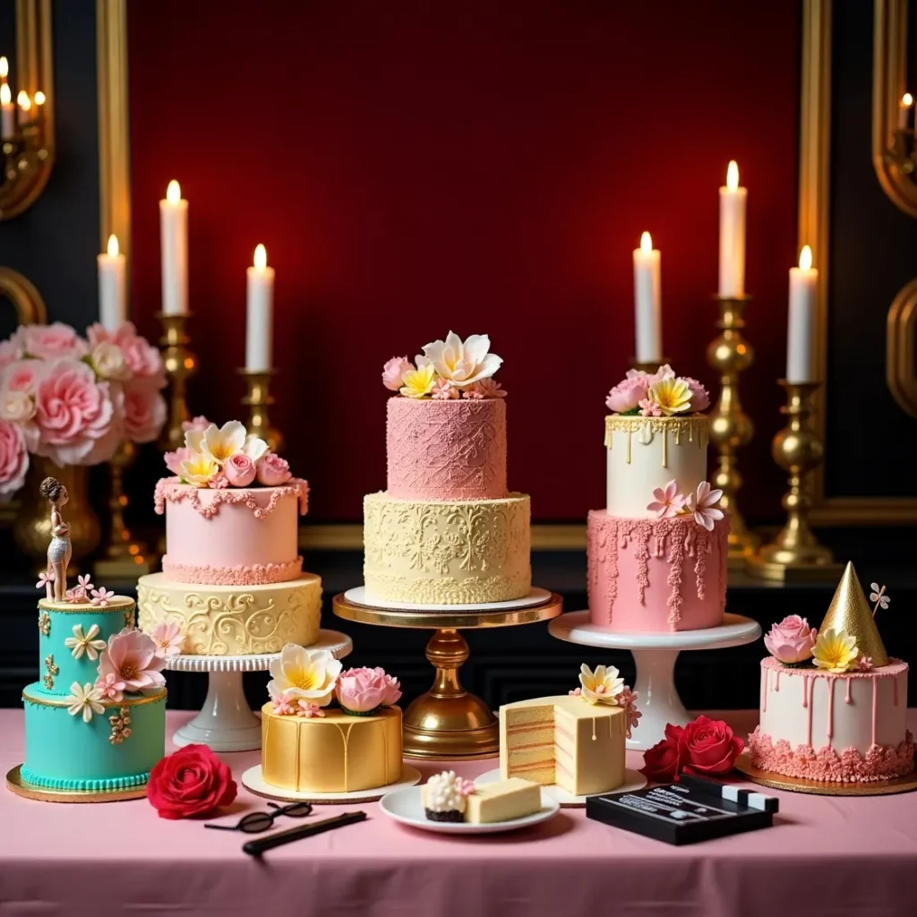 - Red Carpet Glam Cake – A three-tier cake with edible gold dust, film reels, and a topper shaped like a movie camera.